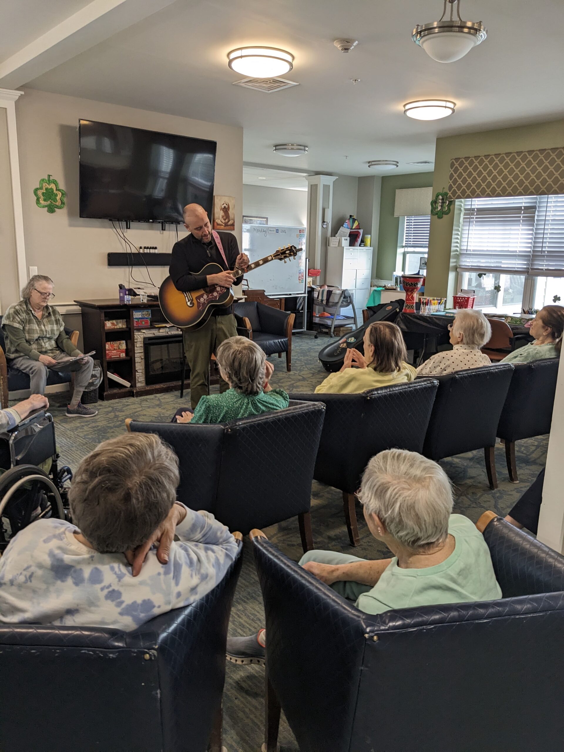 We offer 7 programs per week, including activities like manicures, sing-a-longs, pet therapy, musical entertainment, short stories, journaling, and reminiscing.