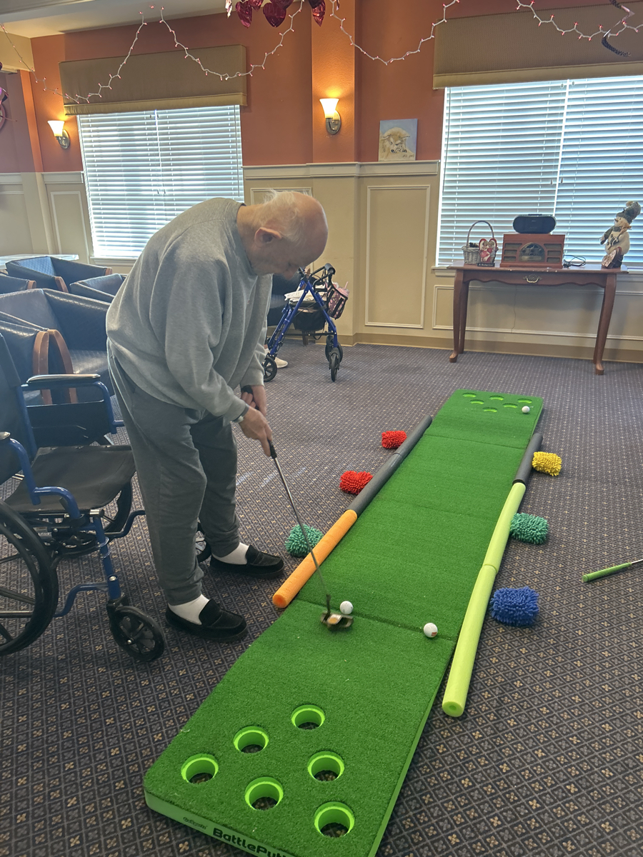 We offer 14 programs per week (2 per day minimum), featuring events like bowling, mini golf, toss across, and stretching.